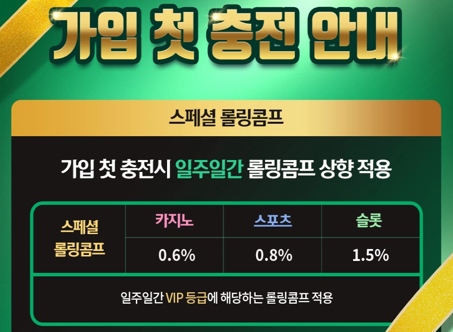 혹시 신규 가입을 고민 중이신가요? 그렇다면 첫 충전 타이밍을 놓치지 마세요. 일주일간의 롤링콤프 상향이 여러분의 첫 게임 경험을 훨씬 더 풍성하게 만들어 줄 수 있습니다. “이건 한 번쯤 경험해볼 만하다”는 제 생각, 아마 직접 해보시면 충분히 공감하실 겁니다.